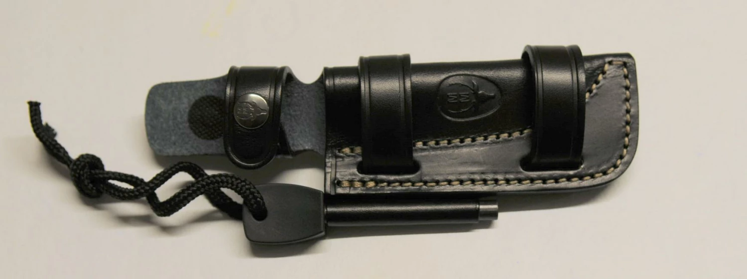 Part of the knife Muela Kodiak 10G.M is tinder mounted on leather Sheath.